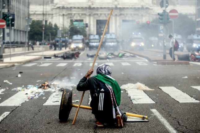 Outside of Bologna,protesters tried to stop traffic on a motorway as part of the demonstration.