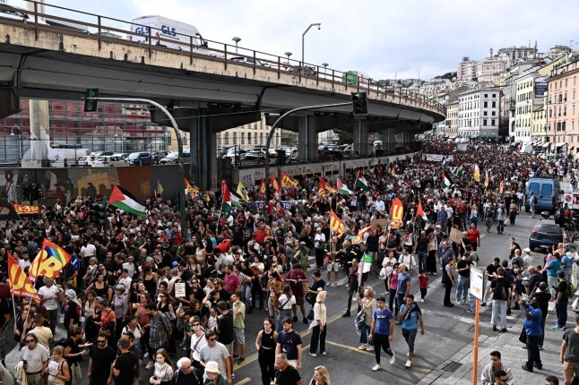 Thousands of people are marching in the streets,waving Palestinian flags alongside Italian ones.