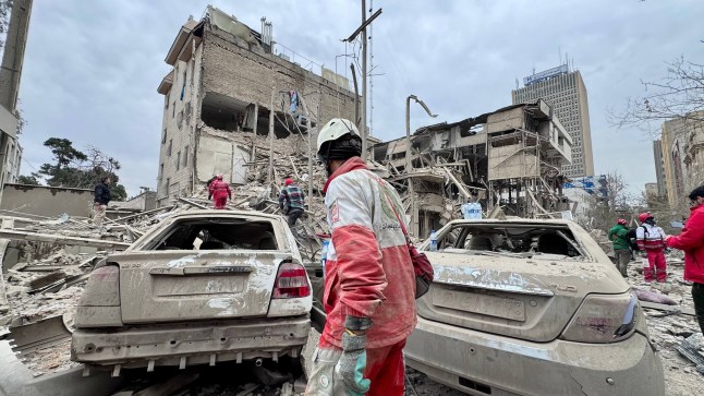 A Tehran building damaged by a U.S.-Israeli airstrike amid the ongoing US-Israeli war on Iran (Picture: Iranian Red Crescent/UPI/Shutterstock)