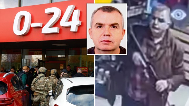 The automatic weapon discarded at the scene (Picture: east2west news)Video from the scene showed emergency crews loading at least one body into an ambulance.Unofficial Telegram channels quoted witnesses saying the gunman had moved down a street shooting people at point-blank range without warning before entering the supermarket.Special tactical units stormed the store after efforts to engage with a negotiator failed.Interior Minister Ihor Klymenko confirmed in a Telegram update: ‘The shooter in Kyiv was liquidated during the arrest.‘Special forces of the…national police stormed the store where the attacker was.‘He took people hostage and shot at a policeman during his detention. Before that,negotiators tried to contact him.’