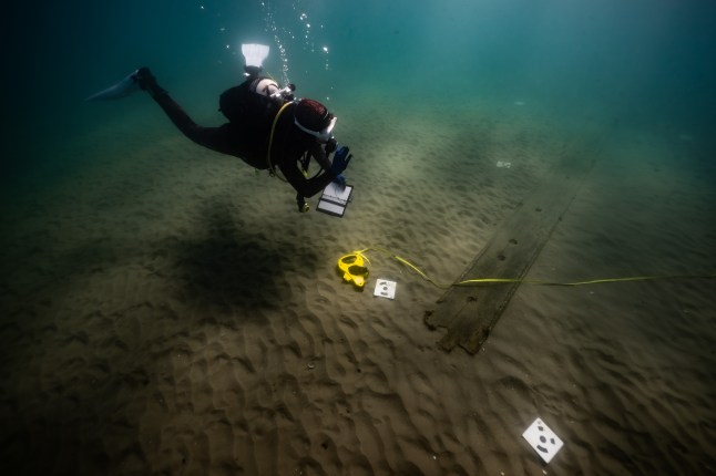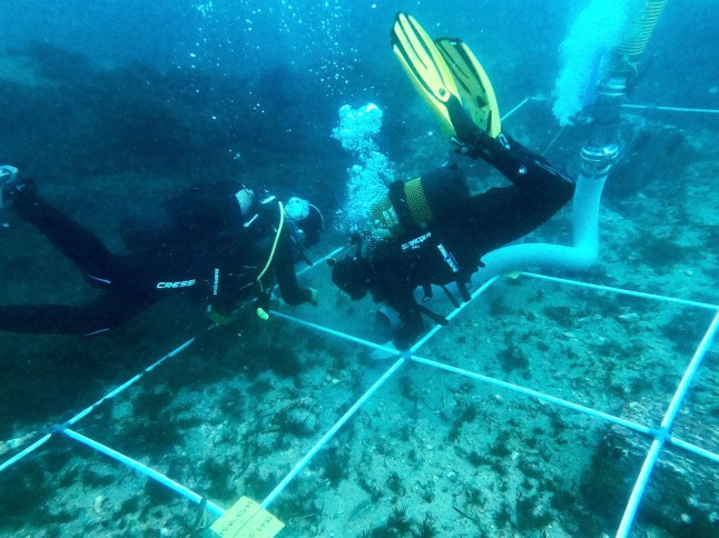 The team use a suction hose to clean away sediment (Picture: Felipe Cerezo Andreo/Cover Media)